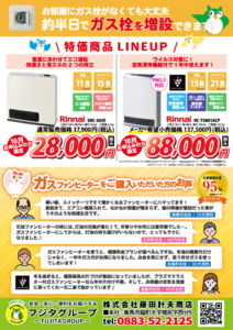 ぜひこの機会に快適・便利なガスファンヒーターをお買い求めください!