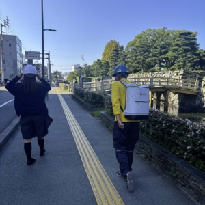 その後、付近に建物が少ない道路を通り、地域の一時避難所に指定されている徳島中央警察署まで移動し、実際の避難経路を確認しました。