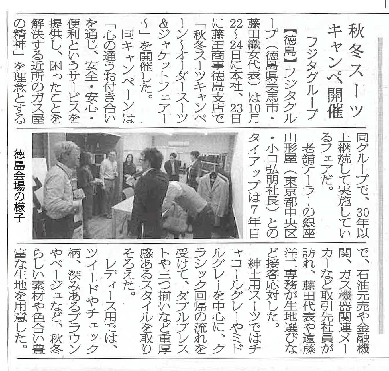「燃料油脂新聞」(2025年11月7日掲載)にて、 当社の【秋冬オーダースーツキャンペーン】の内容が紹介されました。