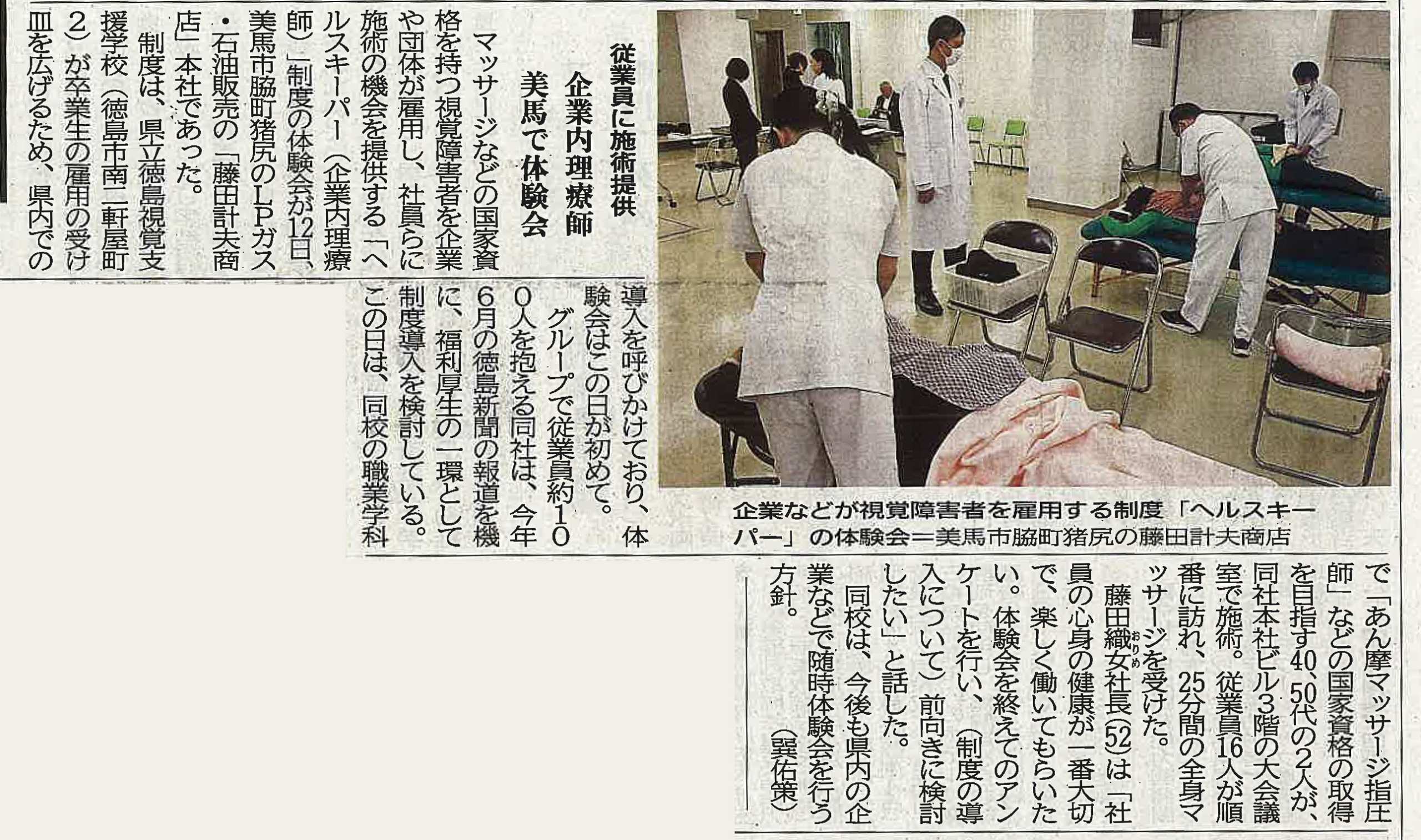 企業内理療(ヘルスキーパー)の可能性を体験いたしました。