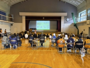 12月12日、勝浦婦人会主催の防災講演にて「LPガスで バッチリ防災!快適生活!」をテーマに、約200名の婦人会員や横瀬小学校5.6年生の皆様に向けて弊社代表が講演いたしました。