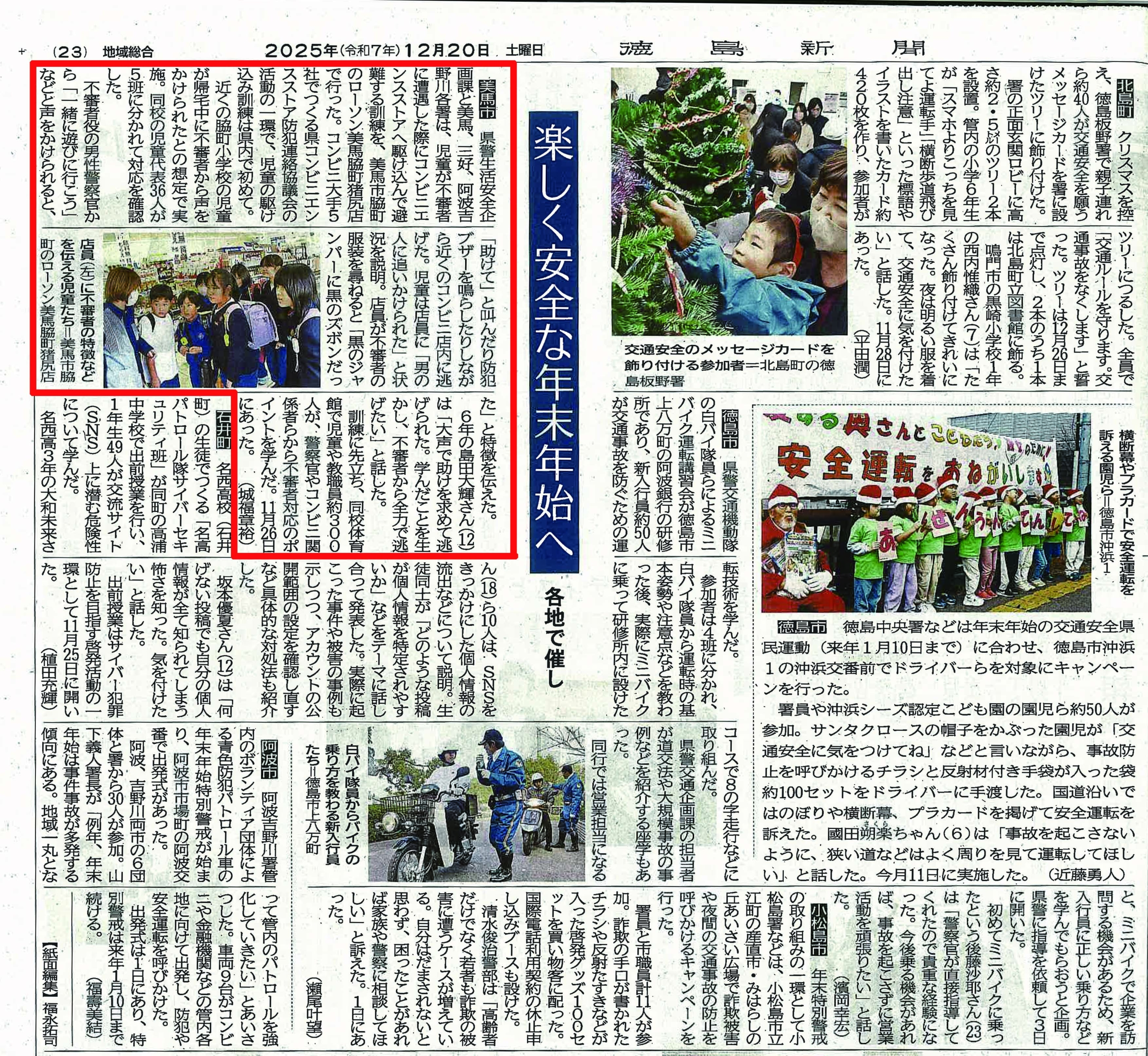なお、当日の防犯訓練の様子は徳島新聞(2025年12月20日掲載)にも紹介されています。
