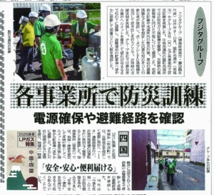 「燃料油脂新聞」新春LPガス特集にて、当社各事業所で実施している防災訓練の取り組みが紹介されました。