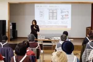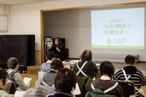 2月19日、石井町女性の会主催の防災講演にて「LPガスで バッチリ防災!快適生活!」をテーマに、約30名の婦人会員の皆様に向けて弊社代表が講演いたしました。